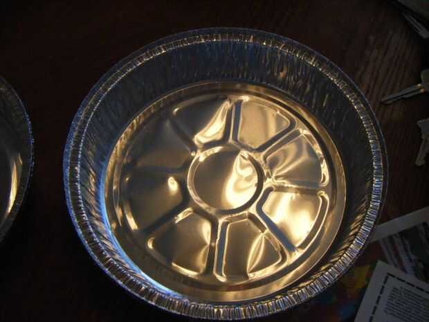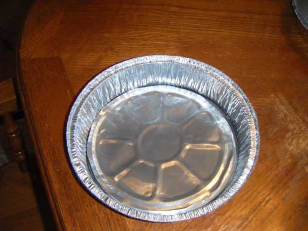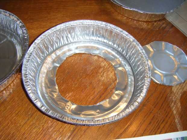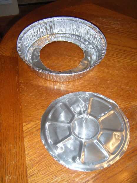 Tengo un pack 3 de bandejitas de plato hondo (similar a lo que se obtiene con las sobras en algunos restaurantes a veces). Un agujero en el medio de una cerca de 1 1/2 pulgada en la lata. Me corte un círculo completo de la parte inferior de la lata de segunda y el ontop del círculo del agujero. Cortar cualquier borde filoso y asegúrese de que lavarla para evitar cualquier fragmentos restantes en las latas. Usé un cuchillo de carne para cortar las tijeras para cortar el círculo entero y cocina.