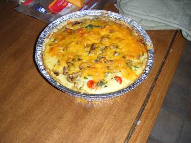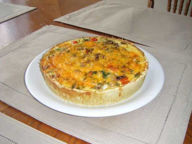 Después se hornea la tarta, dejar enfriar y añadir la mezcla de vegetales y huevo. Hornear durante 25 minutos a 375, y durante los últimos 15 minutos, poner el último 1/4 taza de queso en la parte superior de una deliciosa tapa derretida. Cocinar hasta que la quiche no tiene más líquido (puede que deba add10 minutos extras a la vez si los ingredientes están demasiado húmedos).