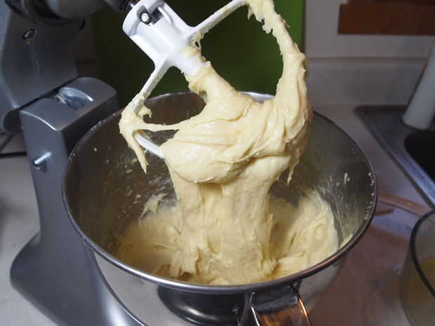 Nota importante sobre la mesa de mezclas: Una parte importante del equipo aquí es el accesorio de paleta (también conocido como un batidor plano borde) para la batidora. Si tienes una batidora Kitchen aid, viene con ese accesorio. Mi preocupación es para los que no tienen uno. Los huevos en esta receta son lo que hace que los rodillos levantan. Utilizando un accesorio batidor regular hará que estos ser muy plano y denso. Hice algunas investigaciones en línea y encontró un par de cosas. Si tienes algo como una licuadora Ninja, sus sets a menudo vienen con un accesorio de paleta de masa y que puede funcionar bien. Peor de los casos, se puede utilizar una batidora de mano un poco (manteniendo la mezcla a la absoluta mínima para incorporar los huevos) y mezclar con una cuchara de madera para el resto.