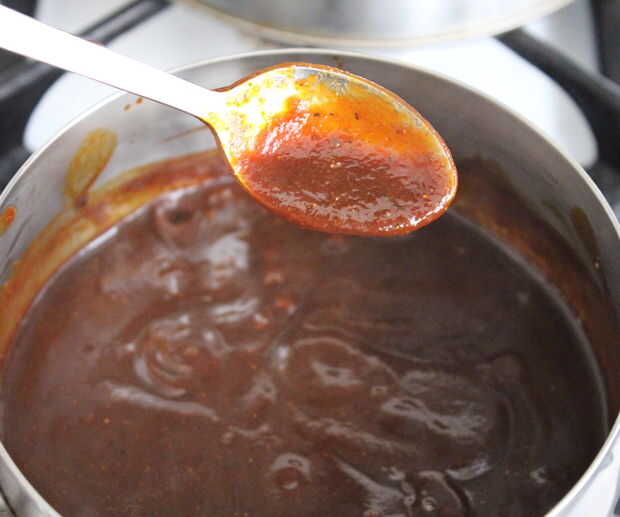 Llevar la salsa a hervir y luego a fuego lento. Cocer a fuego lento por 5-10 minutos o -desea tomar hasta que esté lo suficientemente espesa como para usted.