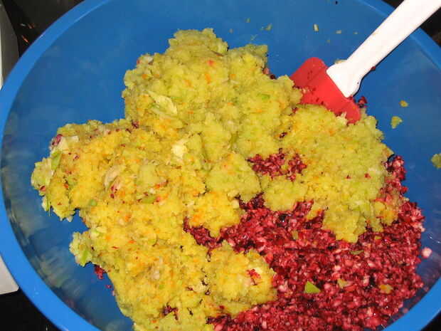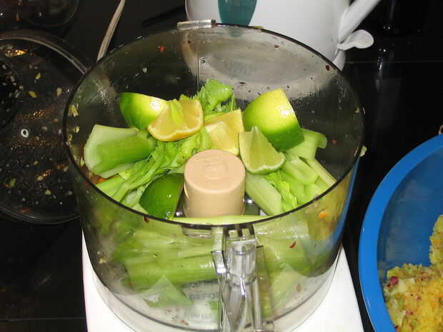 Picar los ingredientes en el procesador de alimentos, procesamiento por lotes como sea necesario para asegurar que todo correctamente es puré. No quiere grandes trozos de cáscara de limón en su salsa, así que asegúrese de que el contenido es más hacia la fase de papilla que los arándanos eran.
