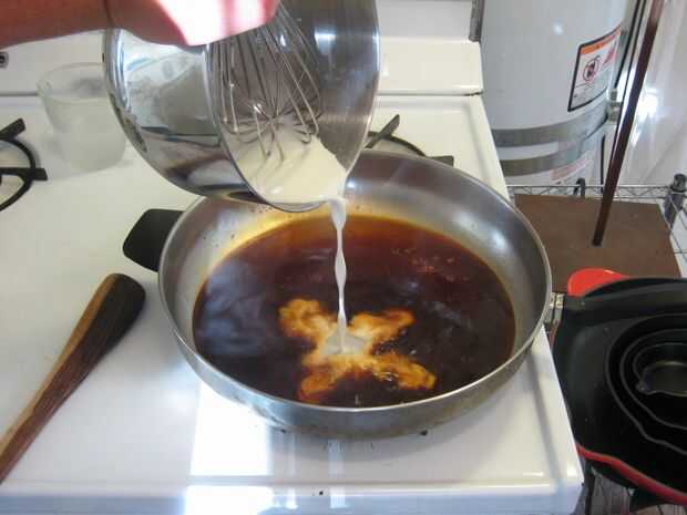 Siga las pautas generales de: Calienta lentamente a fuego lento, agregando más espesante si es demasiado fina, añadiendo más caldo si es a grueso, mantener hirviendo y revolviendo constantemente.