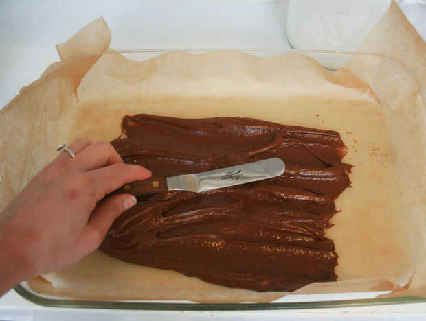 Extender la masa uniformemente en el molde que preparaste. Esto es hecha más fácil por el uso de una espátula offset. Usted no necesita uno, pero son bastante baratos, y he estado usando minas mucho más de lo que pensé que haría!
