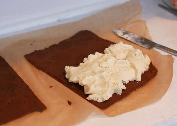 Extienda con el ligeramente ablandado helado, alisar con una espátula.