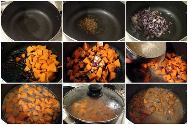 3. Añadir la calabaza en trozos, mezclar y cocinar por dos minutos.