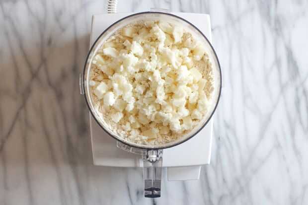 Procesador de alimentos: Una vez que la grasa en el recipiente, la mezcla de harina o grasa pulso 8 - 10 veces o hasta que la grasa se corta bien en la harina. La mezcla debe buscar desmenuzable y uniforme. Si ves los enormes trozos de grasa, pulso otra vez.