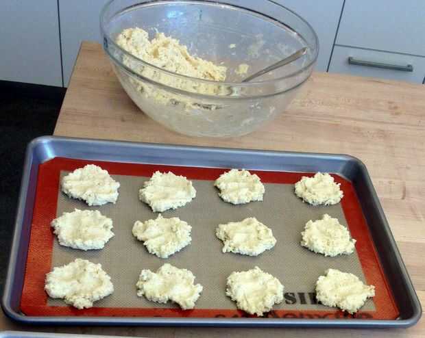 Esta es mi receta de bollos de crema, modificadas para hacer galletas de la gota. Mezcla los ingredientes secos, luego poco a poco agregue crema de leche. Amasar un poco con los dedos, luego sacar bolitas y aplastar en las empanadas en placas sin enmantecar para galletas. (Un silpat no es necesario, pero hará incluso más fácil de limpiar). Untar un poco de sobra crema sobre las galletas y espolvorear con azúcar. Hornear a 350F unos 10 minutos, hasta que doren ligeramente en la parte superior, luego sacar a una rejilla para enfriar.