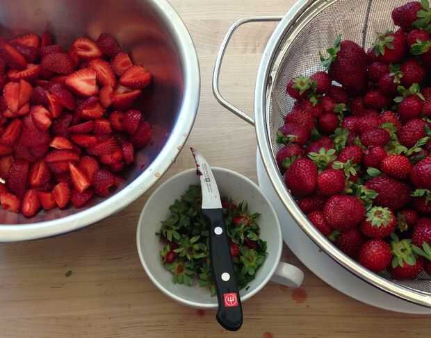 Lavar y picar las bayas y agregue el azúcar y el cardamomo. Remover y dejar que las bayas a macerar a temperatura ambiente hasta que esté listo para servir, al menos durante 15 minutos.