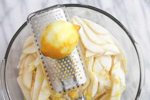 Es otoño y todas las granjas alrededor de mí están vendiendo las manzanas y las peras. No me gusta los pasteles que son sólo dulces, así que decidí hacer una tarta de pera que no es un desierto sino más bien un arrancador o un aperitivo. Revisé lo qu