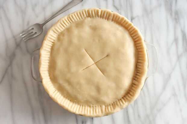 Una vez que la corteza superior se remete debajo, pulse todo alrededor de los bordes de la corteza con un tenedor para sellarlo. Luego corté una cruz en el medio para que el vapor puede escapar. :)