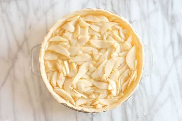 Luego de la cuchara en el relleno de pera, estirar la corteza superior y pone que más.