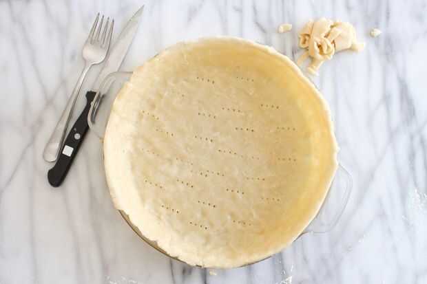 Una vez en la corteza inferior, presione en la cacerola con mis dedos y luego pinchar todo con un tenedor. Si tengo cualquier exceso corteza colgando sobre el borde recorte el.