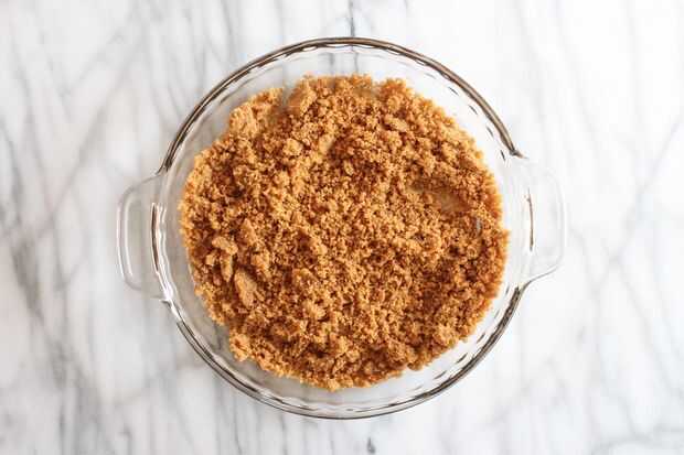 Vierta la mezcla de la corteza en el pan y extenderlo alrededor para que tenga una cubierta incluso sobre la parte inferior y una buena cantidad alrededor de los bordes exteriores para hacer los lados.