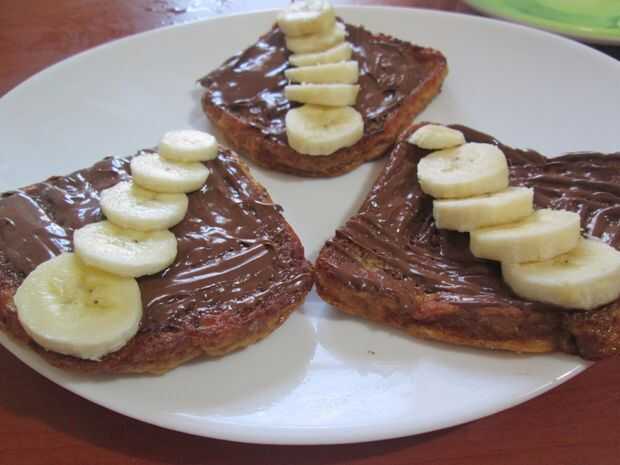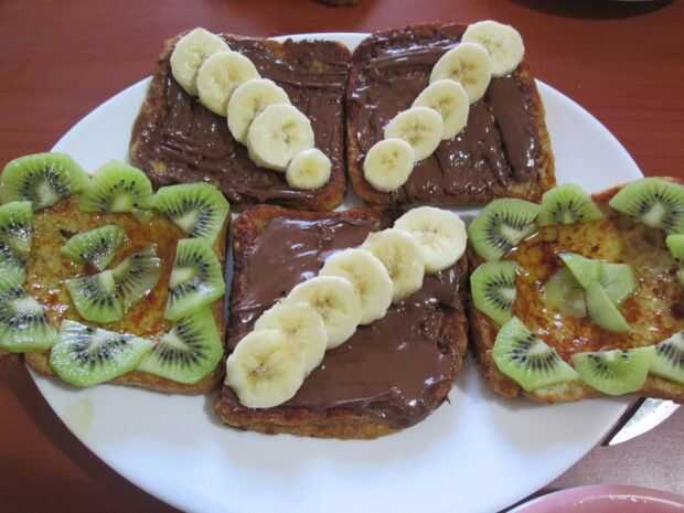 Extensión 1 cucharadas de nutella o miel sobre el pan y decorar con rodajas de plátano o / y kiwi...