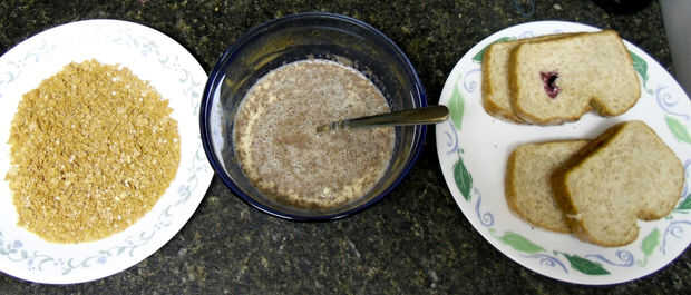 relleno de pan pila > mezcla > capa de cereal > sartén