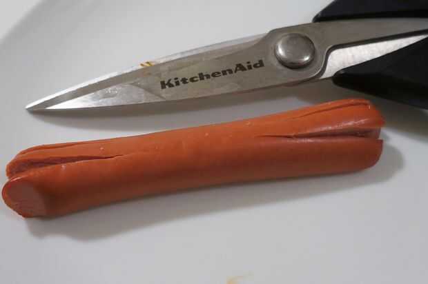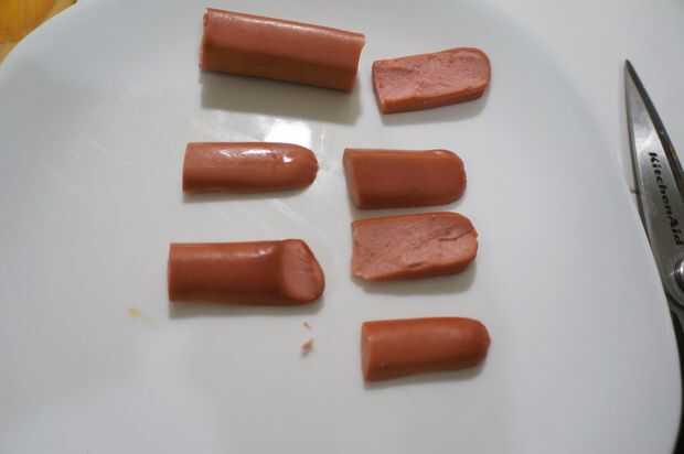 Ojalá puedan ver en las fotos Cómo cortar las formas de queso y salchichas.
