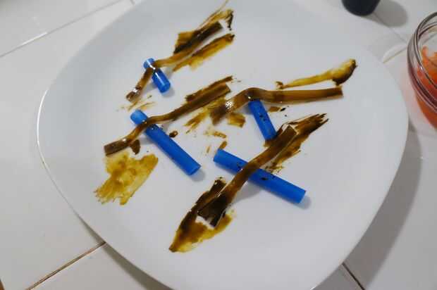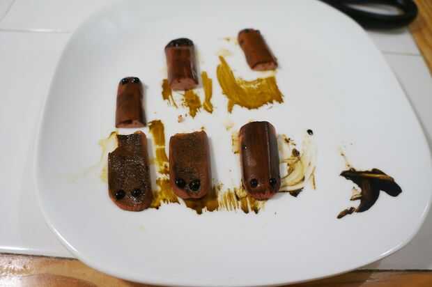 Hice las cabezas de los perros calientes y el piernas y la cola de los quesos.