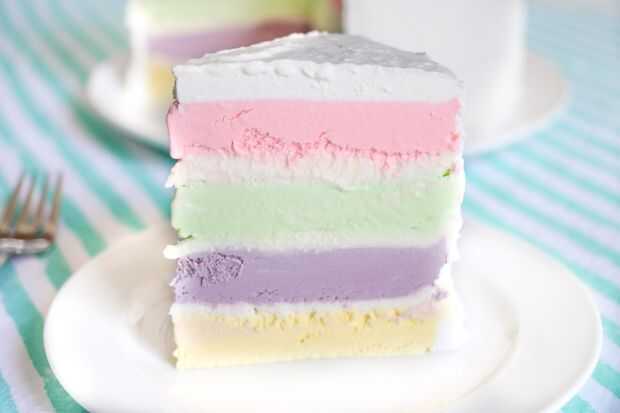 Pastel de helado son yummilicious congelados tratar. Sin duda, es gran éxito en todas las edades. Ayer hice este helado arco iris para mi hijo. Ella lo ama mucho :) Ella se siente atraída por los colores que utilicé en el pastel. Esto hice con sabor