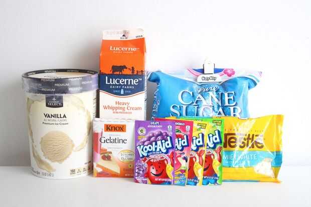 - 4 paquetes de Kool-Aid, lo que sabores y colores que desee
