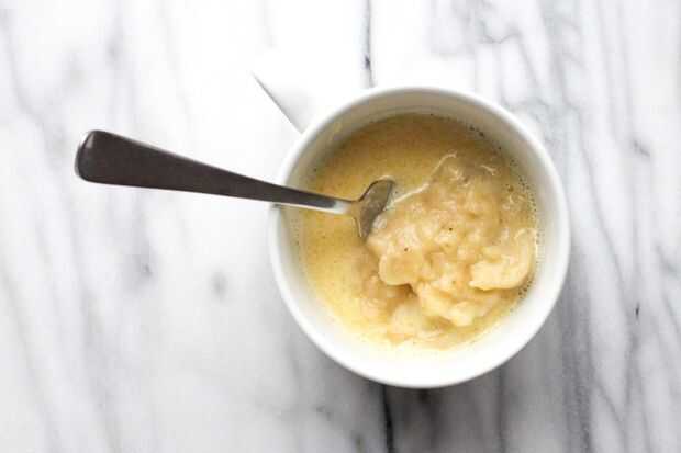 Añadir el puré de plátano en la taza y revuelva todo con el tenedor - puede ser bastante duro con él para asegurarse de que todo se mezcle bien.
