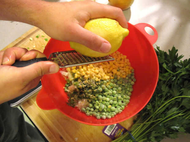 1/2 ralladura de un limón en la mezcla y especias con sal, pimienta y una pizca de pimienta de tierra para añade especias.