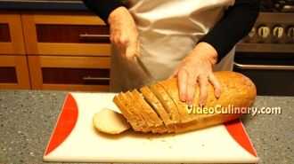 Cortar 200 gramos de pan duro en rebanadas gruesas de 1cm (0,5 pulgadas).
