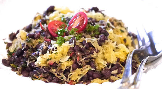 - Calabaza de espagueti orgánica de tamaño medio, cociné (ver instrucciones abajo)