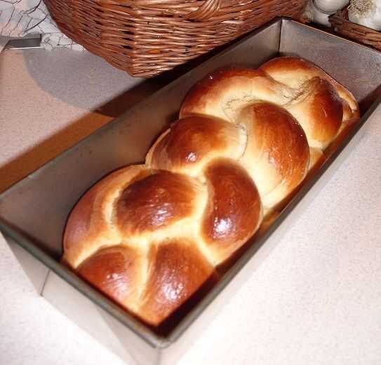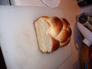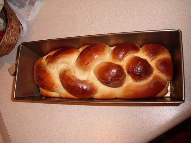 Ahora pon tu challah en el horno precalentado a 180 * C (360 * F) durante unos 40 minutos (hasta que un palillo de metal apuñalado dentro salga seco)