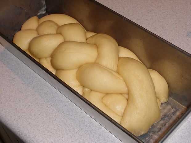 Ahora poner en el formulario para hornear y dejarlo en un lugar cálido durante una hora (no te preocupes si piensas que es demasiado pequeño. Crecerá un poco en el horno). Luego untar suavemente la clara del huevo en la parte superior con un cepillo.