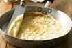 Calentar la sartén antiadherente. Poner un poco de aceite. Vierta una capa delgada de la mezcla en él y extendió rápidamente con el cucharón. Espere hasta que el color es marrón claro.