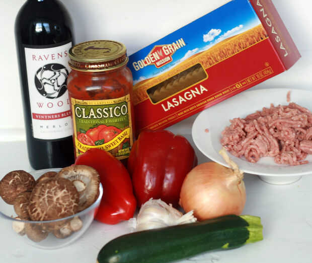 Se puede jugar bastante rápido y suelta con esta receta siempre y cuando no sustituya no hervir los tallarines de los fideos de lasaña tradicional. Se puede utilizar conserva de tomates pelados enteros, salsa casera o comprada de tienda. Usted puede elegir agregar proteína o no. Yo pavo molido, pero funcionaría también carne de res, cerdo, seitán, tempeh o una combinación de cualquiera de las anteriores. También lancé en algún calabacín, champiñones y pimientos al subir el cociente vegetal, y usted puede ir salvaje aquí.