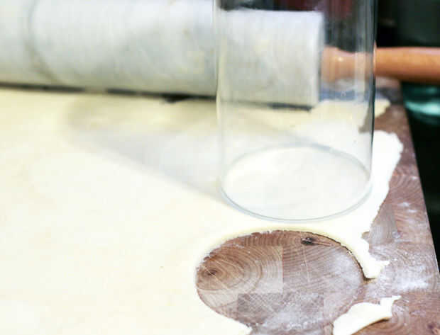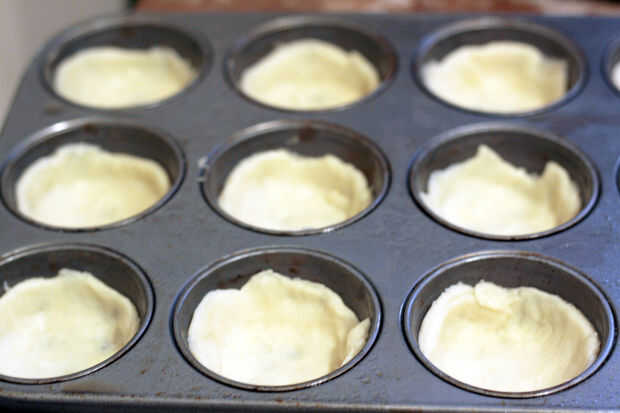 Cuando se utiliza la receta de la corteza de pastel, utilizar un cortador de galletas o un vaso de agua para cortar círculos para encajar en sus latas del mollete mini.