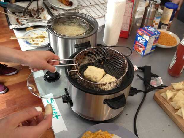 Si eres tu estufa en vez de una freidora todavía puede seguir estas instrucciones. Se calienta el aceite en una olla y use un colador para facilitar la fritura.