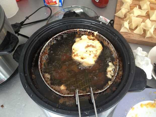 4. Cocinero: los s ' Mores flotará en la parte superior del aceite. Cocine cada lado por 3-4 minutos hasta que estén doradas.