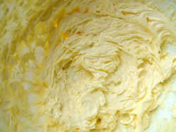 -Poner la mantequilla (175g) en un bol. Tamizar el azúcar glas (40g) en la mantequilla. Bate la mezcla hasta que cremoso y agradable.