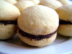 Las galletas del emparedado juntos en pares hasta que la ganache de chocolate y galletas se utilizan para arriba.