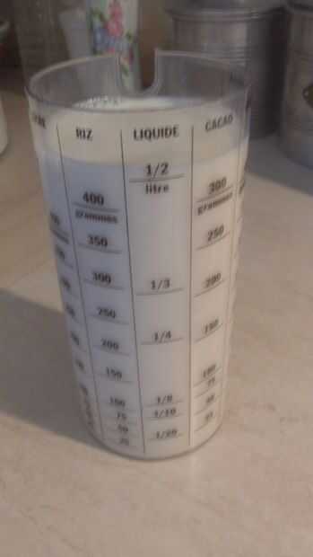• Medida 1/2 litro de leche desnatada en la mitad.
