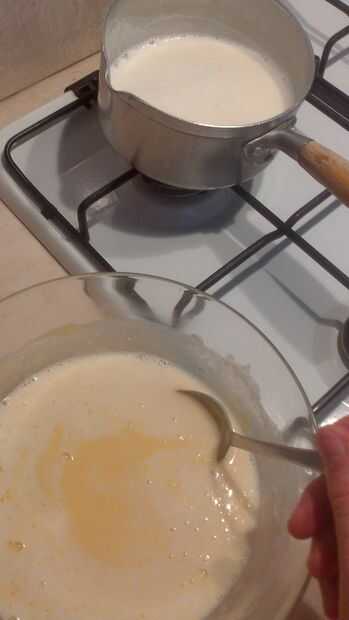 • Cuando está muy caliente (cuidado, no hirviendo!), agregar en el recipiente. Mezclar todo junto.
