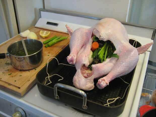 Vierta la mezcla de mantequilla sobre el Pavo entero, frotando por todo el pavo piel y cavidad del cuerpo.