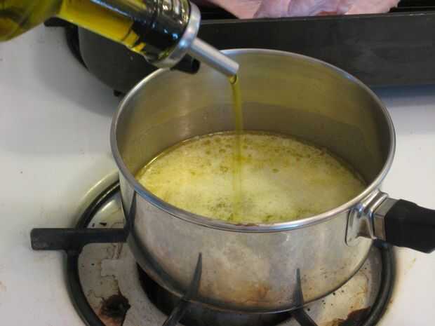 Tomar el palillo de la mantequilla y derretir en una olla pequeña a fuego bajo. Había adelgazado mi mantequilla un poco con 1/4 de taza de aceite de oliva. Yo normalmente disipe mantequilla con aceite de oliva ya que mantiene Dore tan rápidamente, una característica que será útil al asar un pavo durante varias horas en un horno caliente. Queremos piel marrón crujiente agradable, pero no queremos lo forma antes nuestra Turquía ha acabado cocinar. Más sobre esto más adelante.
