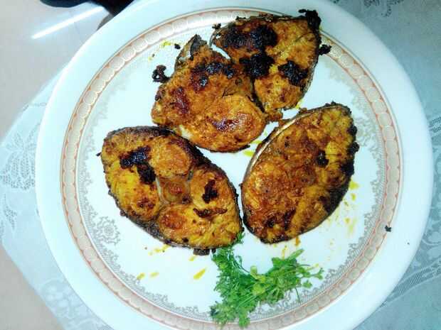 -Acariciando el pescado es muy importante que si está empapado las especias no se sentará en el pescado seco.