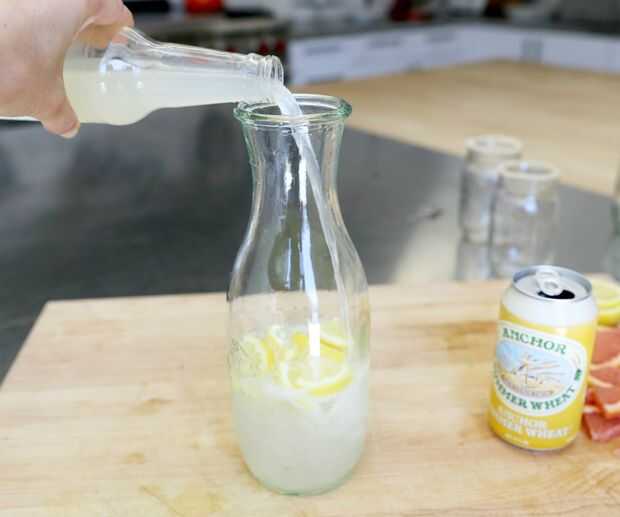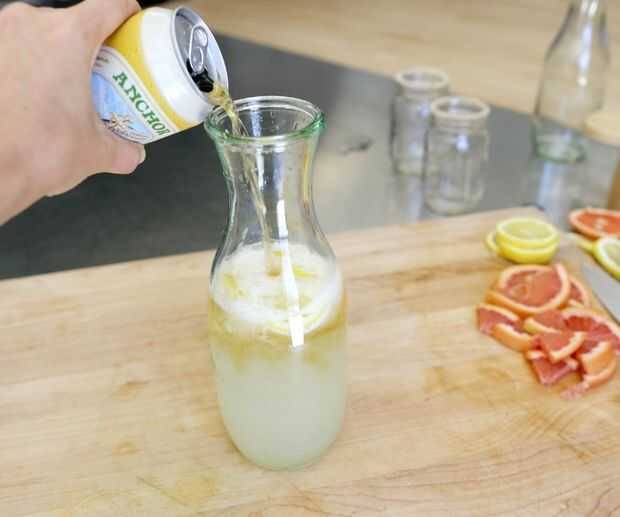 Verter la sosa en primer lugar, seguida por la cerveza.