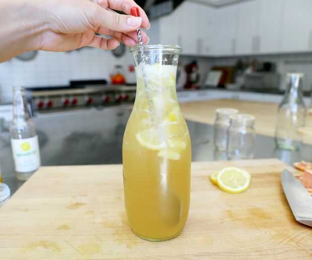 Use un pincho de bambú o cuchara cóctel para mezclar los dos.