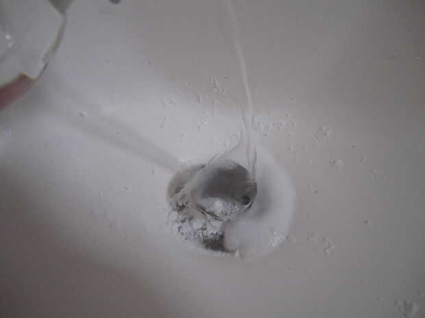 Esto es muy simple - sólo bicarbonato de sodio y vinagre blanco. También puede utilizar zumo de limón si tienes en mano! Esto funciona mejor en los desagües que están funcionando muy lento, pero no aquellos con agua estancada. Si su problema es residuos de jabón u otros se acumulan, esto romper para arriba y hacer las cosas otra vez en movimiento. También funciona como un buen desodorante para desagües de la cocina.