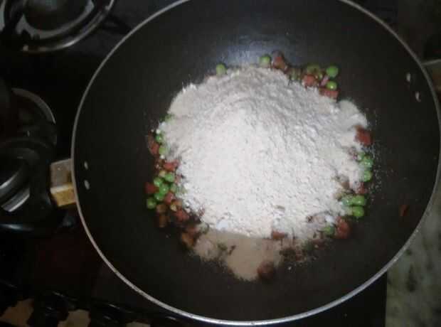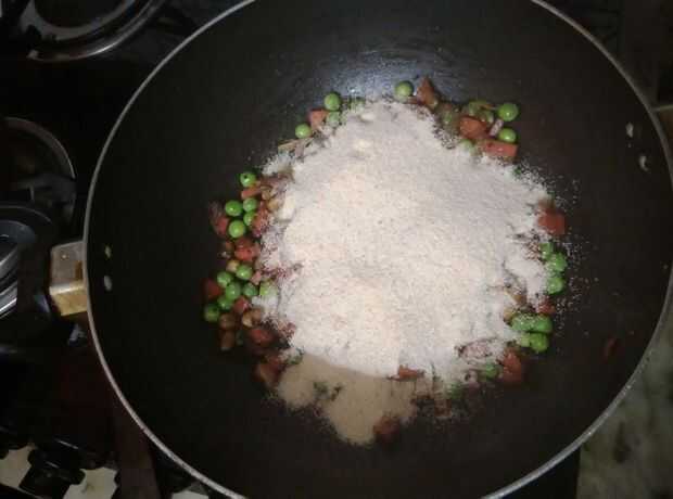 5. Ahora, añadir rosted sémola y la avena molida tostada, sofría durante 2-3 minuto