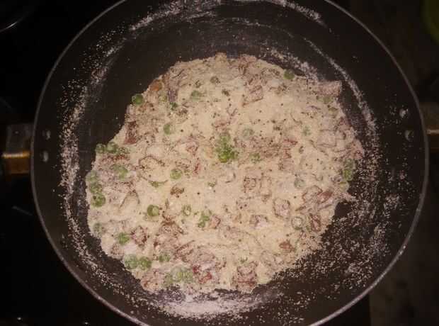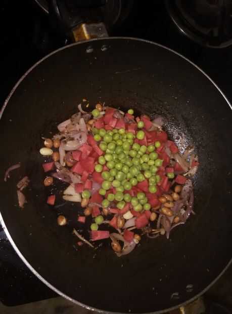 4. Añadir los guisantes y carot picado y rehogar durante 2 minutos.