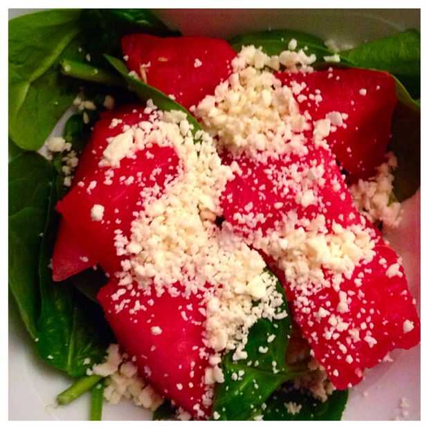 1. Llene la taza hasta la mitad con espinaca baby lavada.