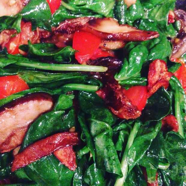 6. Añadir las espinacas y dejar absorber el aceite y calentar, pero tenga cuidado de no sobrecocinar.