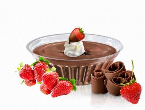 Enfriar hasta que cuaje. Decorar con crema batida y un poco de ralladura de chocolate y fresas.