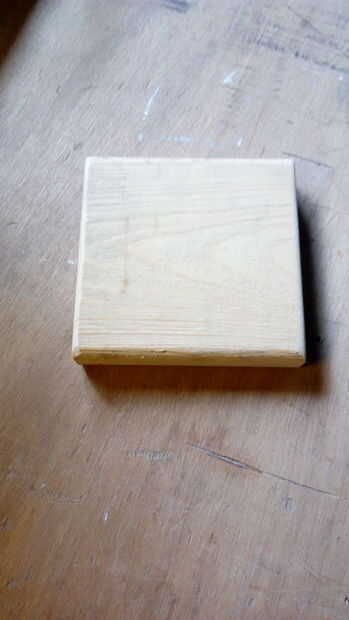 En el granero también encontré algo de madera que originalmente venía de una caja de almacenaje de la patata. Hice cuadrados y lija en las esquinas de la parte superior.
